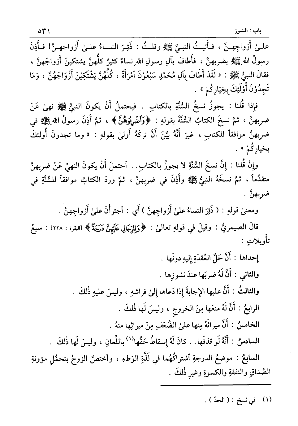 قال الصيمري: وقيل في قَوْله تَعَالَى: {وَلِلرِّجَالِ عَلَيْهِنَّ دَرَجَةٌ} [البقرة: 228] [البقرة: 228] : سبع تأويلات.