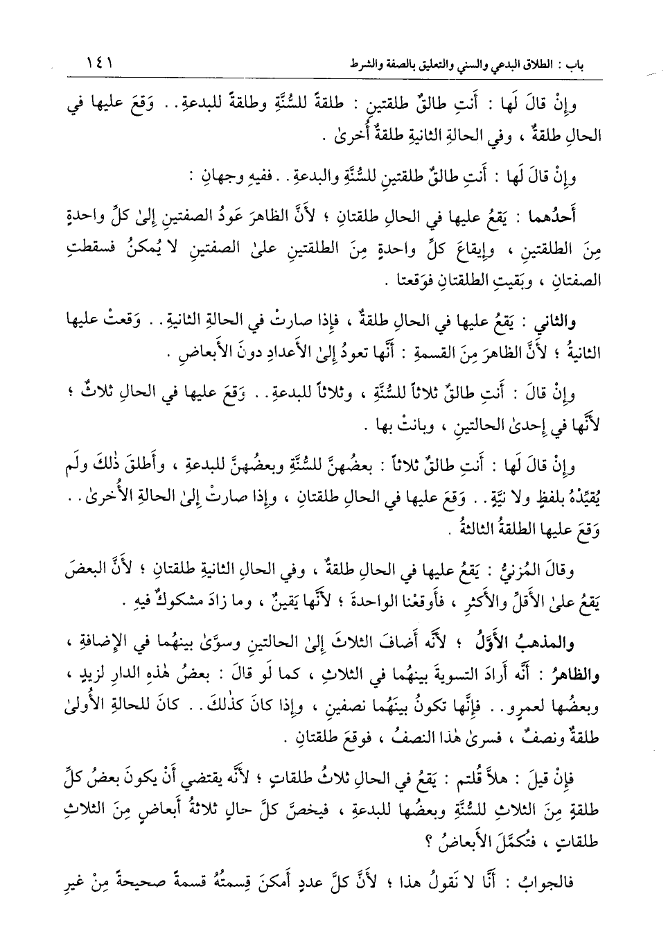 فإن قيل: هلا قلتم: يقع في الحال ثلاث طلقات؛ لأنه يقتضي أن يكون بعض كل طلقة من الثلاث للسنة وبعضها للبدعة، فيخص كل حال ثلاثة أبعاض من الثلاث طلقات، فتكمل الأبعاض؟