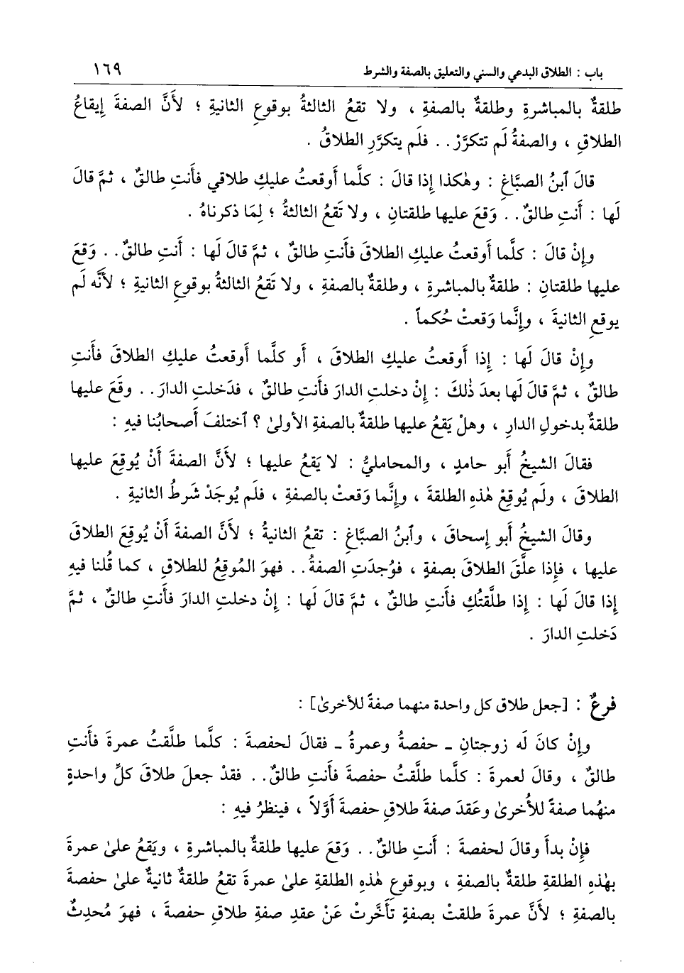 فإن بدأ وقال لحفصة: أنت طالق.. وقع عليها طلقة بالمباشرة، ويقع على عمرة بهذه الطلقة طلقة بالصفة، وبوقوع هذه الطلقة على عمرة تقع طلقة ثانية على حفصة بالصفة؛ لأن عمرة طلقت بصفة تأخرت من عقد صفة طلاق حفصة، فهو محدث