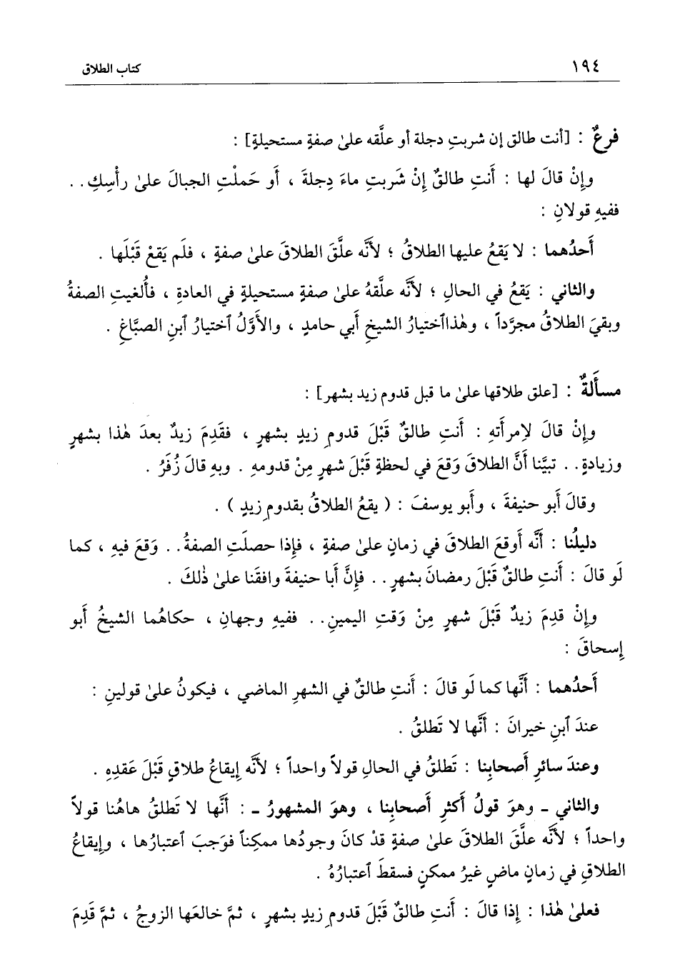 وقال أبو حنيفة، وأبو يوسف: (يقع الطلاق بقدوم زيد) .