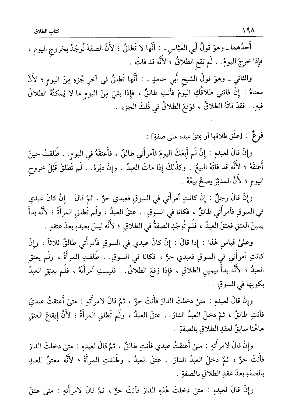 وعلى قياس هذا: إذا قال: إن كان عبدي في السوق فامرأتي طالق ثلاثا، وإن كانت امرأتي في السوق فعبدي حر، فكانا في السوق.. طلقت المرأة، ولم يعتق العبد؛ لأنه بدأ بيمين الطلاق، فإذا وقع الطلاق.. فليست امرأته، فلم يعتق العبد بكونها في السوق.