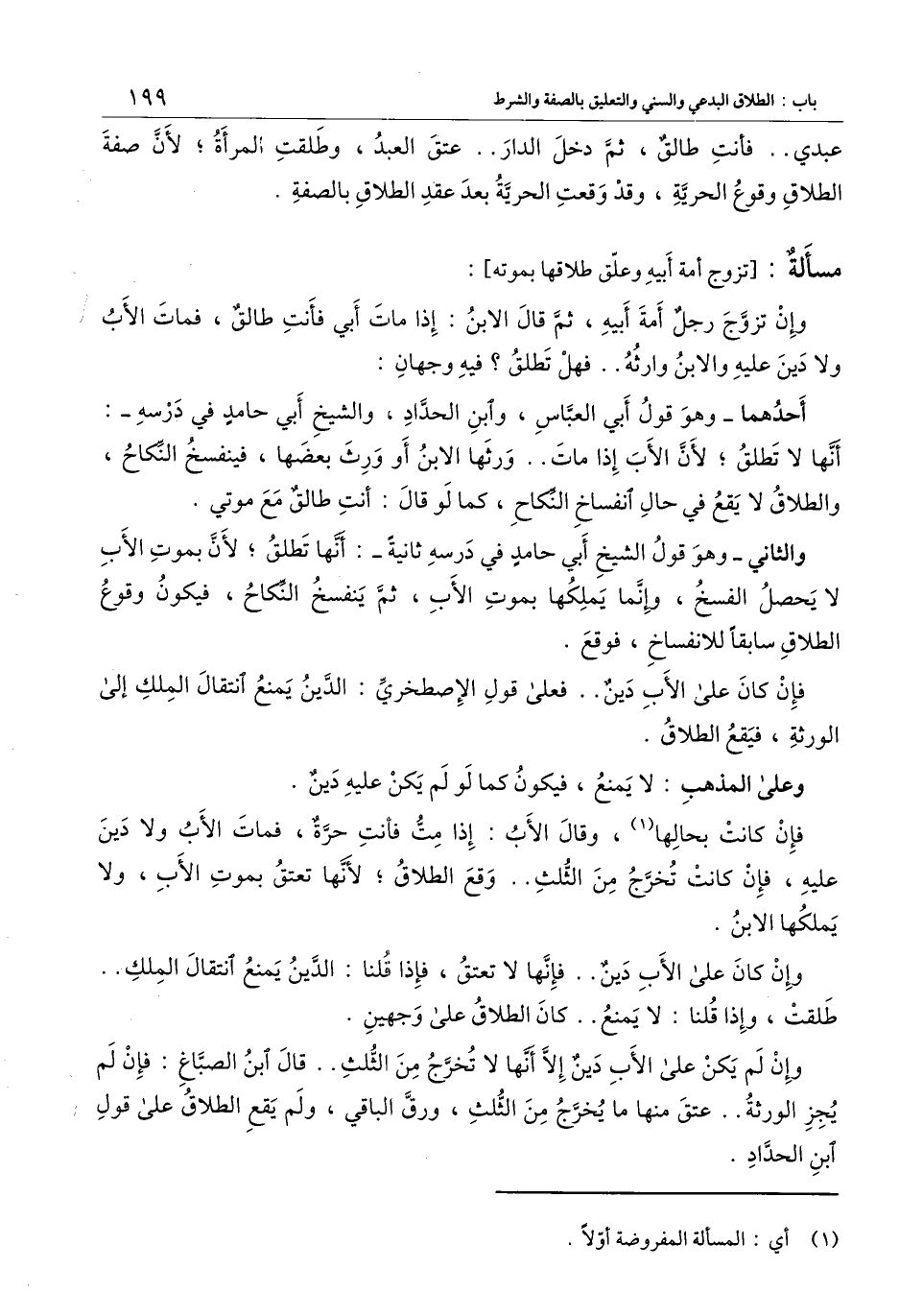 [مسألة: تزوج أمة أبيه وعلق طلاقها بموته]