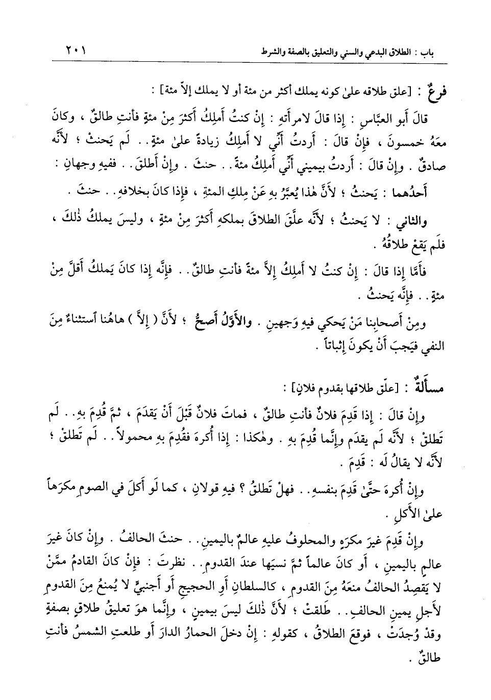 [مسألة: علق طلاقها بقدوم فلان]