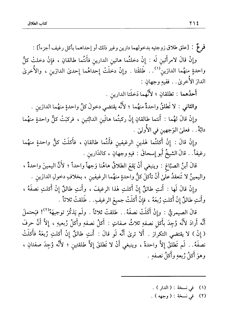 [فرع: علق طلاق زوجتيه بدخول الدار أو بأكل رغيف]