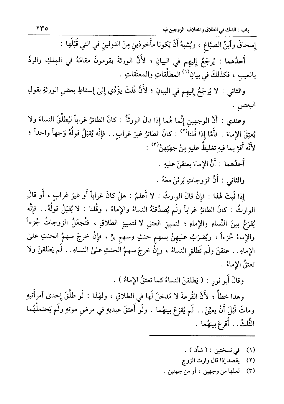 وقال أبو ثور: (يطلقن النساء كما تعتق الإماء) .