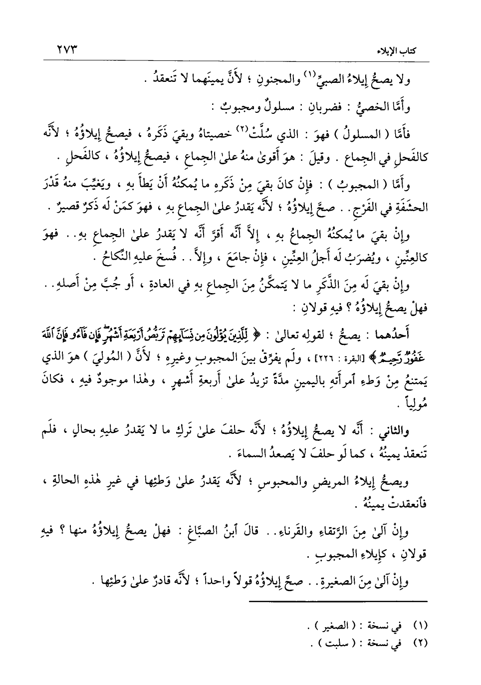 فأما (المسلول) فهو: الذي سلت خصيتاه وبقي ذكره، فيصح إيلاؤه؛ لأنه كالفحل في الجماع. وقيل: هو أقوى منه على الجماع، فيصح إيلاؤه، كالفحل.