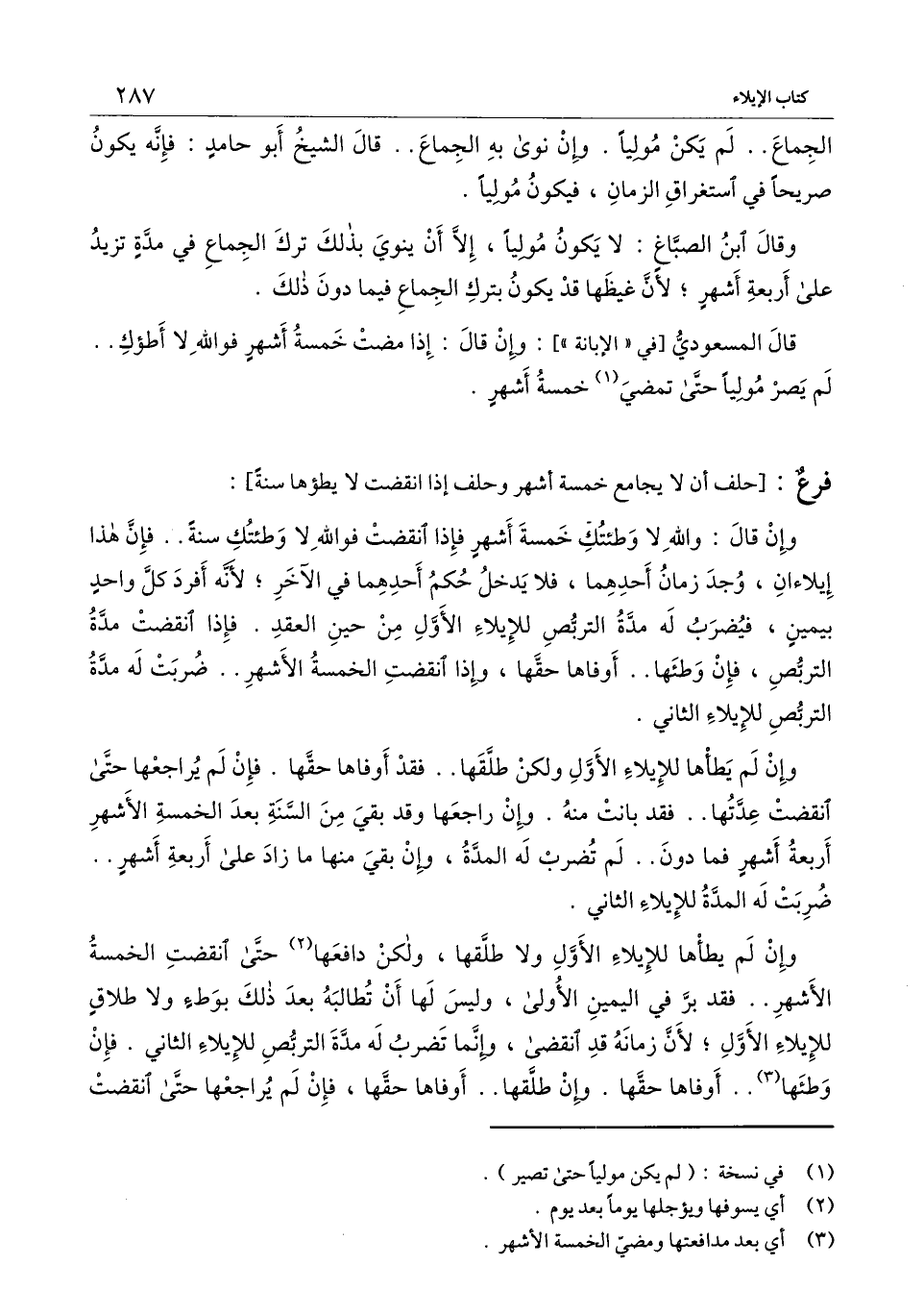 قال المسعودي [في " الإبانة "] : وإن قال: إذا مضت خمسة أشهر فوالله لا أطؤك.. لم يصر موليا حتى تمضي خمسة أشهر.