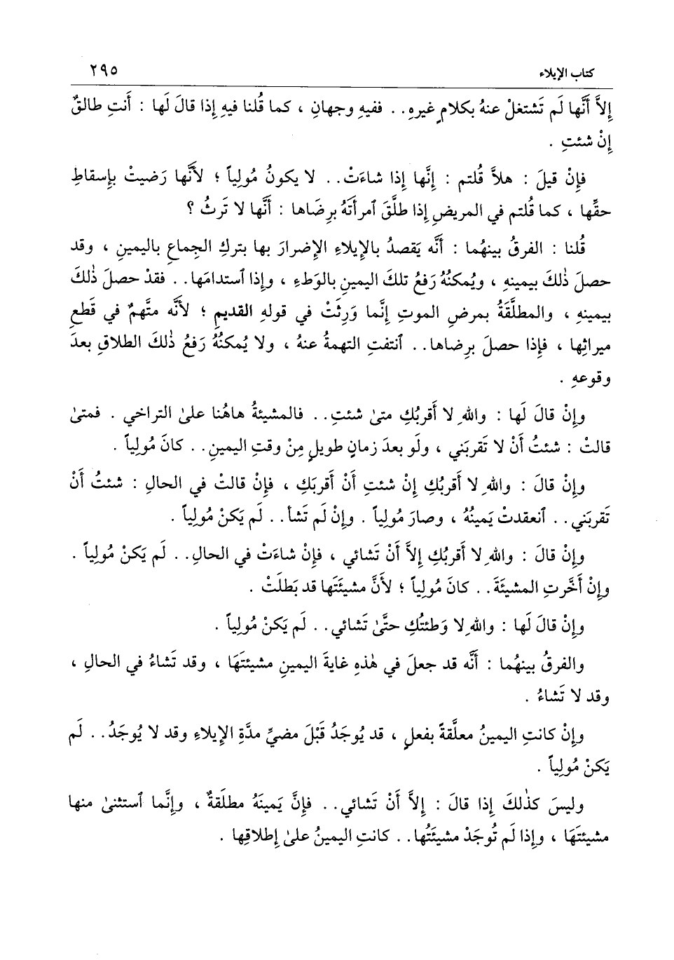 وإن قال لها: والله لا وطئتك حتى تشائي.. لم يكن موليا.
