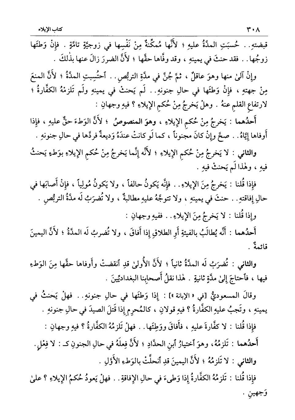 فإذا قلنا: يخرج من الإيلاء.. فإنه يكون حالفا، ولا يكون موليا، فإن أصابها في حال إفاقته.. حنث في يمينه، ولا تتوجه عليه مطالبة، ولا تضرب له مدة التربص.