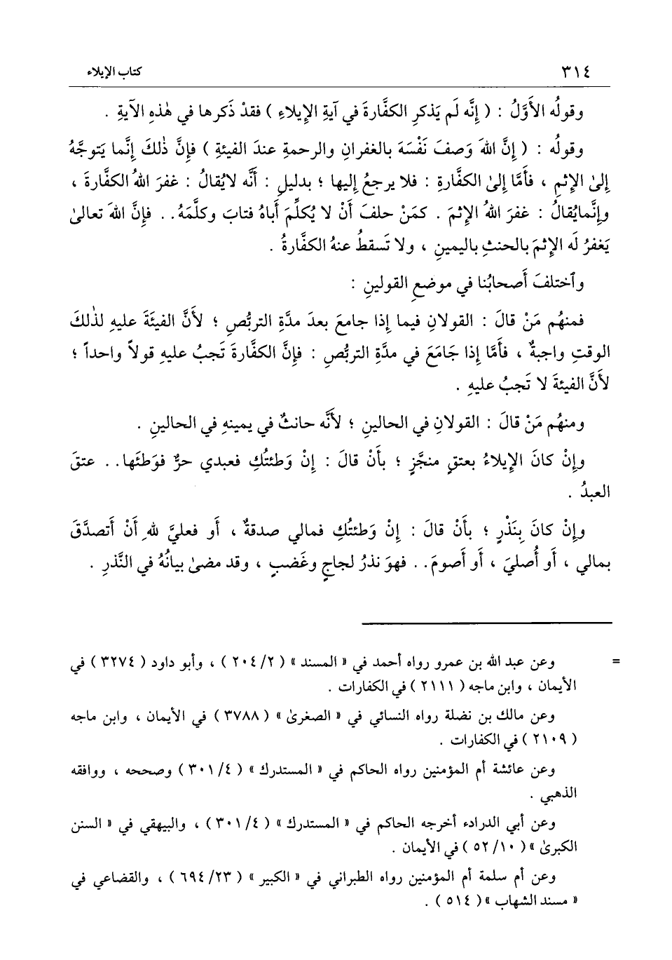 وقوله الأول: (إنه لم يذكر الكفارة في آية الإيلاء) فقد ذكرها في هذه الآية.