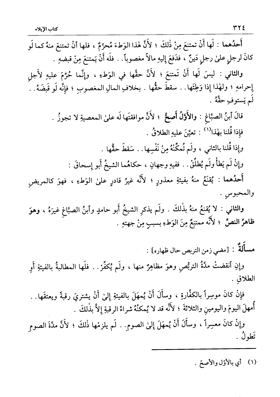 قال ابن الصباغ: والأول أصح؛ لأن موافقتها له على المعصية لا تجوز.