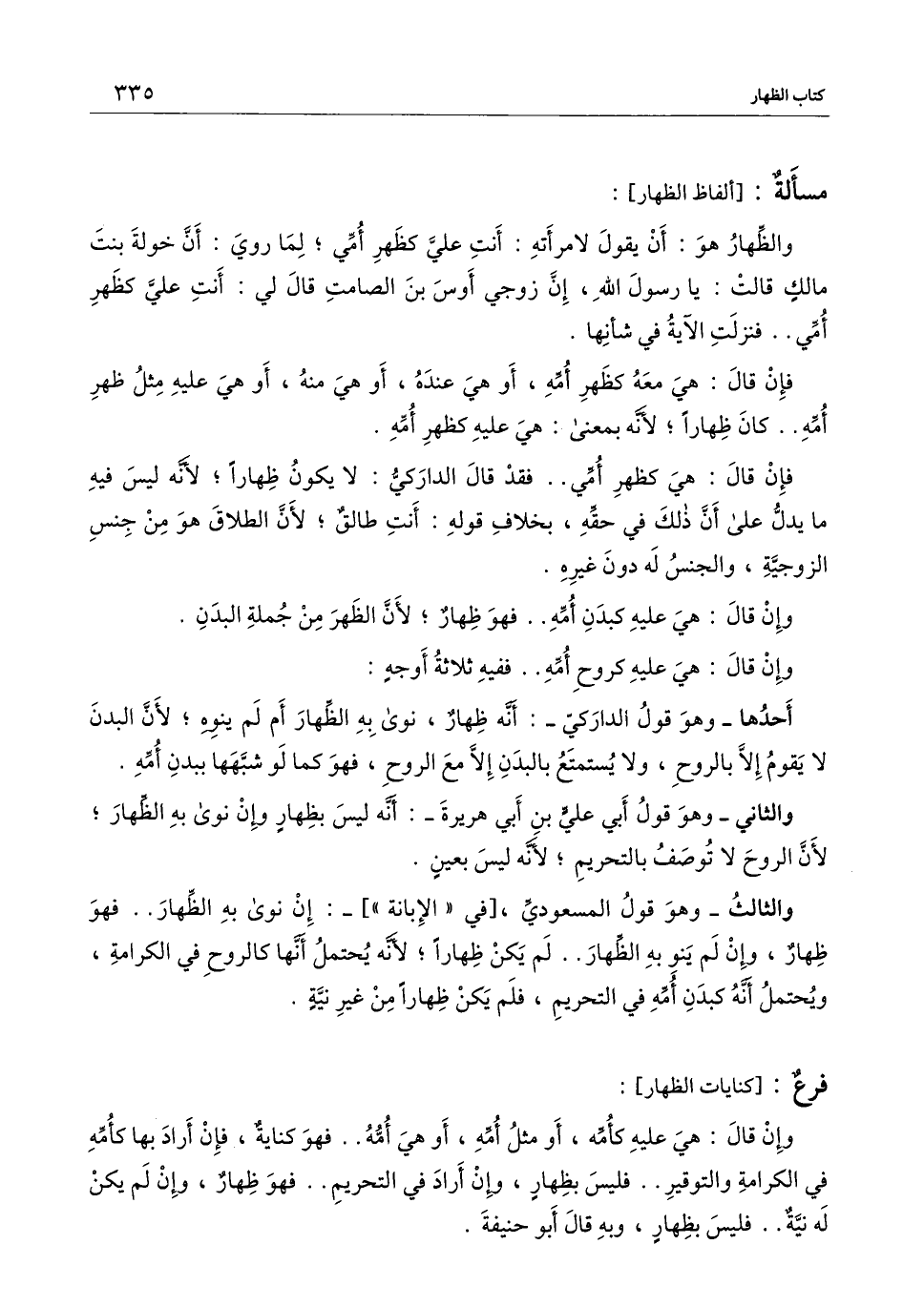 ] : والظهار هو: أن يقول لامرأته: أنت علي كظهر أمي؛ لما روي: «أن خولة بنت مالك قالت: يا رسول الله، إن زوجي أوس بن الصامت قال لي: أنت علي كظهر أمي» .. فنزلت الآية في شأنها.