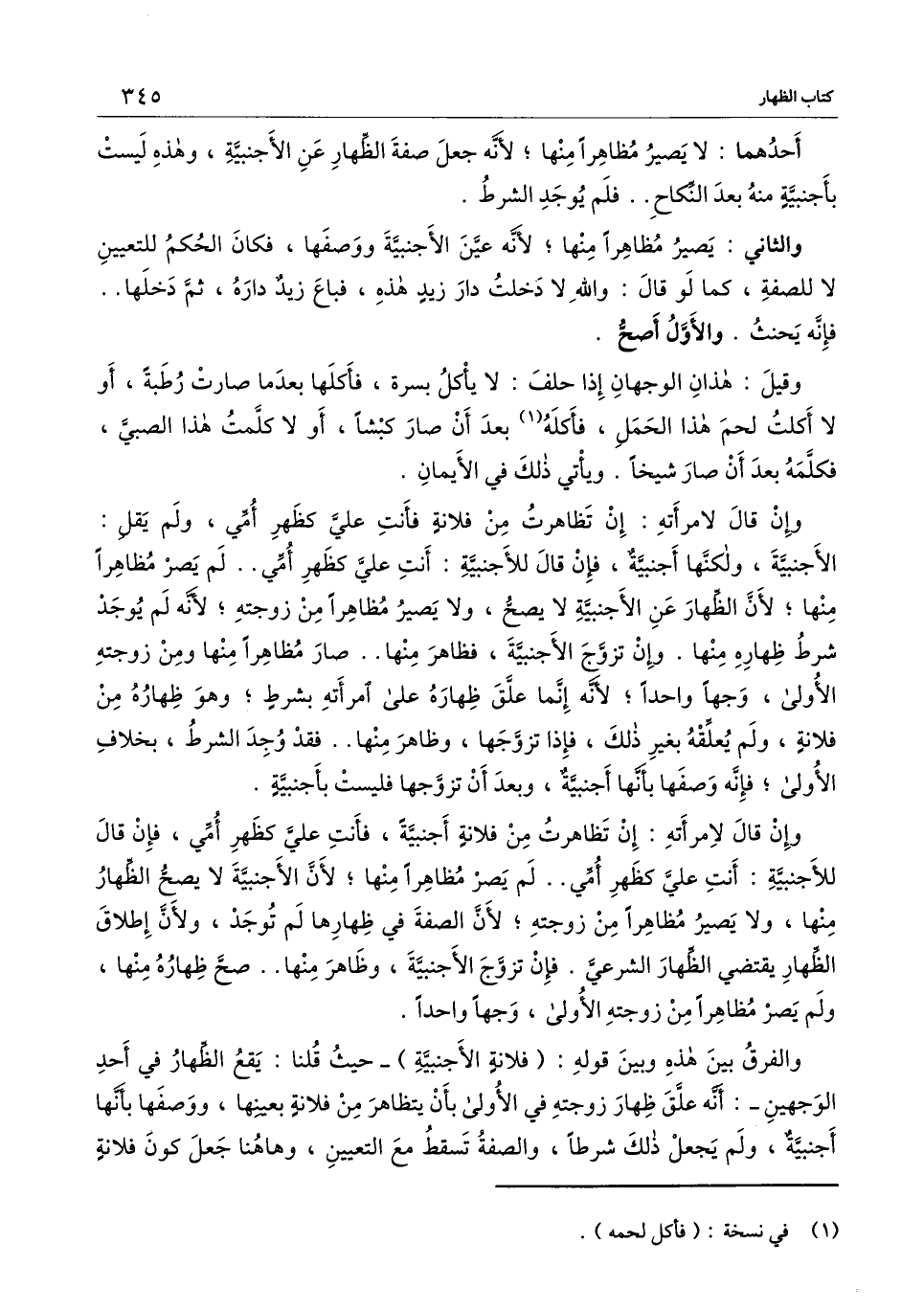 والثاني: يصير مظاهرا منها؛ لأنه عين الأجنبية ووصفها، فكان الحكم للتعيين لا للصفة، كما لو قال: والله لا دخلت دار زيد هذه، فباع زيد داره، ثم دخلها.. فإنه يحنث. والأول أصح. وقيل: هذان الوجهان إذا حلف: لا يأكل بسرة، فأكلها بعدما صارت رطبة، أو لا أكلت لحم هذا الحمل، فأكله بعد أن صار كبشا، أو لا كلمت هذا الصبي، فكلمه بعد أن صار شيخا. ويأتي ذلك في الأيمان.