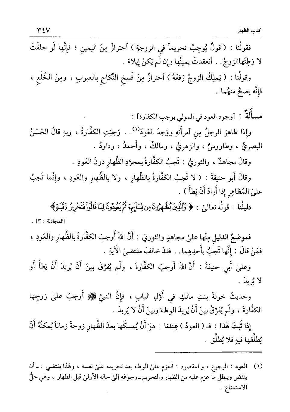 فموضع الدليل منها على مجاهد والثوري: أن الله أوجب الكفارة بالظهار والعود، فمن قال: إنها تجب بأحدهما.. فقد خالف مقتضى الآية.