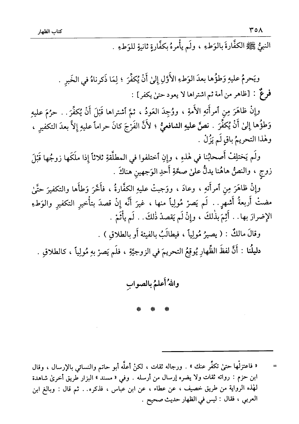 ويحرم عليه وطؤها بعد الوطء الأول إلى أن يكفر؛ لما ذكرناه في الخبر.