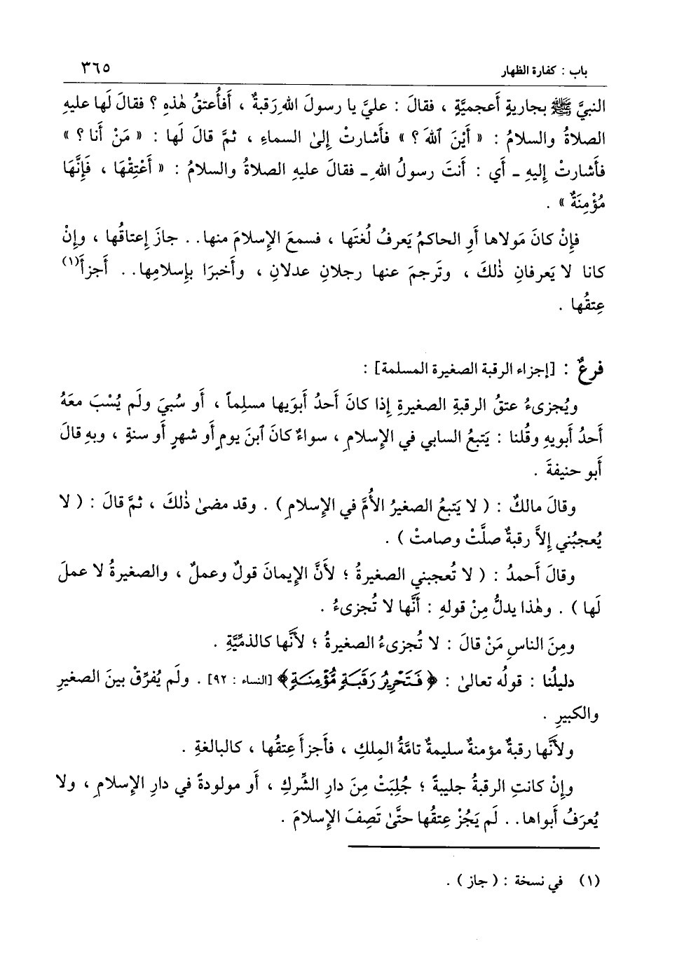[فرع: إجزاء الرقبة الصغيرة المسلمة]