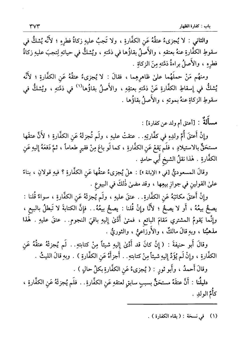 ومنهم من حملهما على ظاهرهما، فقال: لا يجزئ عتقه عن الكفارة؛ لأنه يشك في إسقاط الكفارة عن ذمته بعتقه، والأصل بقاؤها في ذمته، ويشك في سقوط الزكاة عنه بموته، والأصل بقاؤها.