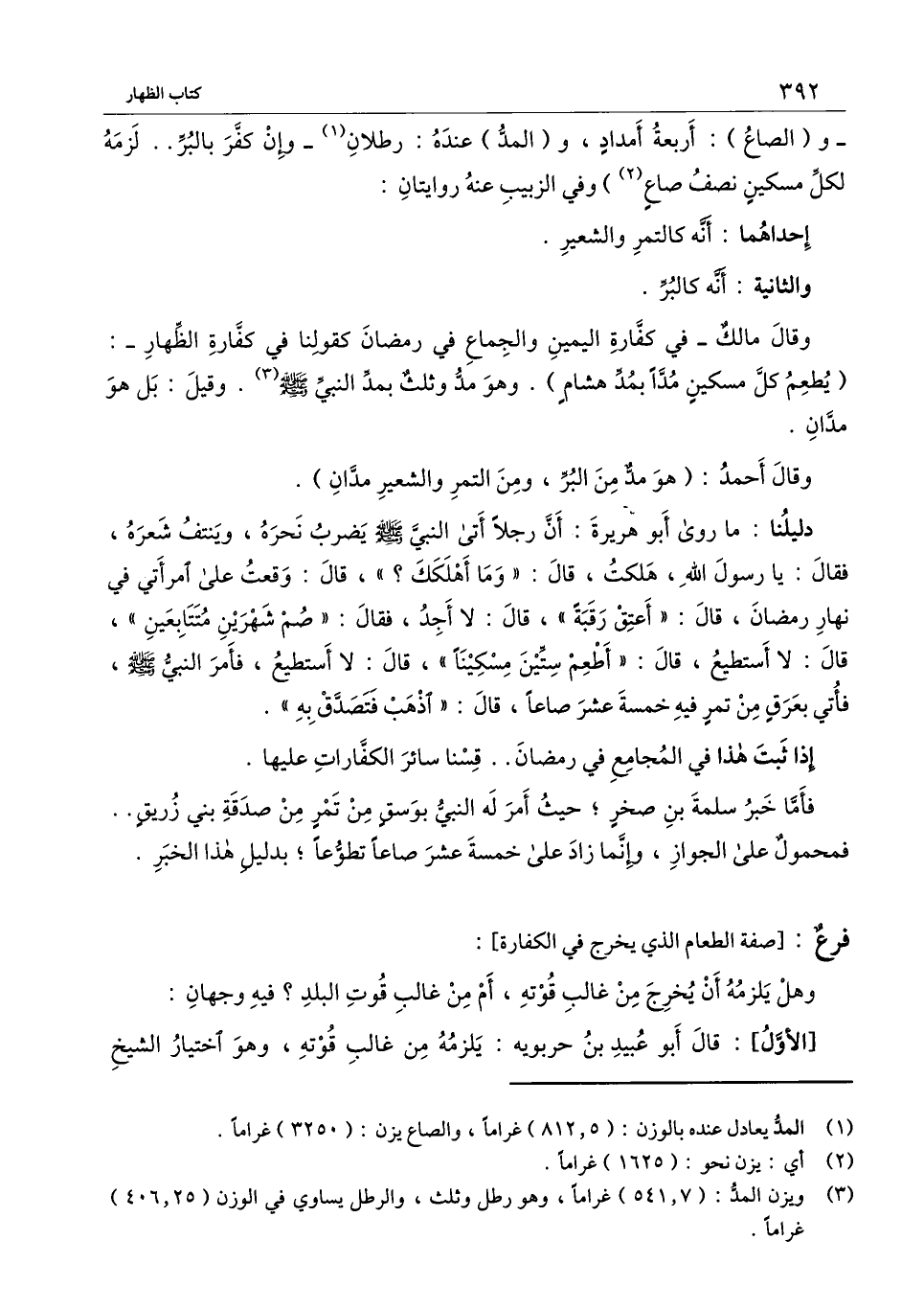 وقال أحمد: (هو مد من البر، ومن التمر والشعير مدان) .
