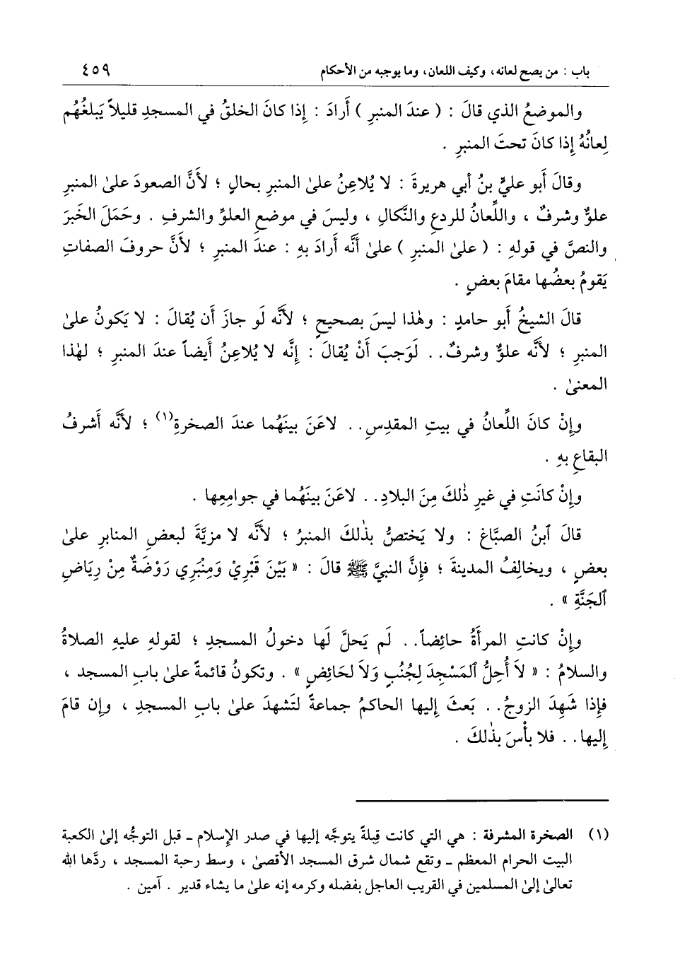 قال الشيخ أبو حامد: وهذا ليس بصحيح؛ لأنه لو جاز أن يقال: لا يكون على المنبر؛ لأنه علو وشرف.. لوجب أن يقال: إنه لا يلاعن أيضا عند المنبر؛ لهذا المعنى.