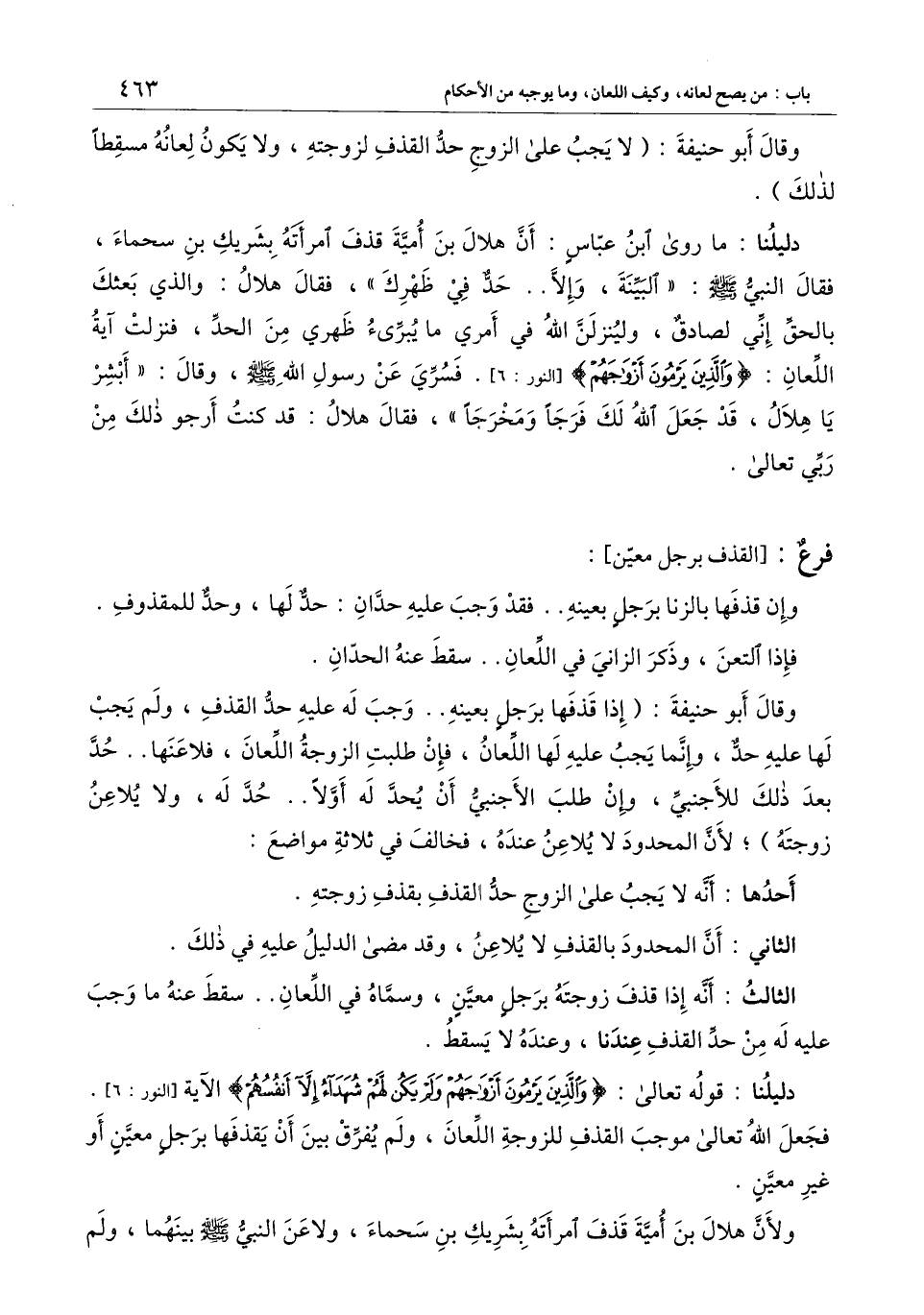 دليلنا: ما روى ابن عباس: «أن هلال بن أمية قذف امرأته بشريك بن سحماء، فقال النبي - صَلَّى اللَّهُ عَلَيْهِ وَسَلَّمَ -: " البينة، وإلا.. حد في ظهرك "، فقال هلال: والذي بعثك بالحق إني لصادق، ولينزلن الله في أمري ما يبرئ ظهري من الحد، فنزلت آية اللعان: {وَالَّذِينَ يَرْمُونَ أَزْوَاجَهُمْ} [النور: 6] [النور: 6] . فسري عن رسول الله - صَلَّى اللَّهُ عَلَيْهِ وَسَلَّمَ -، وقال: " أبشر يا هلال، قد جعل الله لك فرجا ومخرجا "، فقال هلال: قد كنت أرجو ذلك من ربي تعالى» .