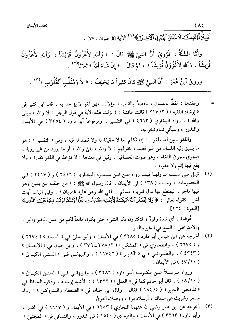 وروى ابن عمر: أن النبي - صَلَّى اللَّهُ عَلَيْهِ وَسَلَّمَ - «كان كثيرا ما يحلف: لا ومقلب القلوب»