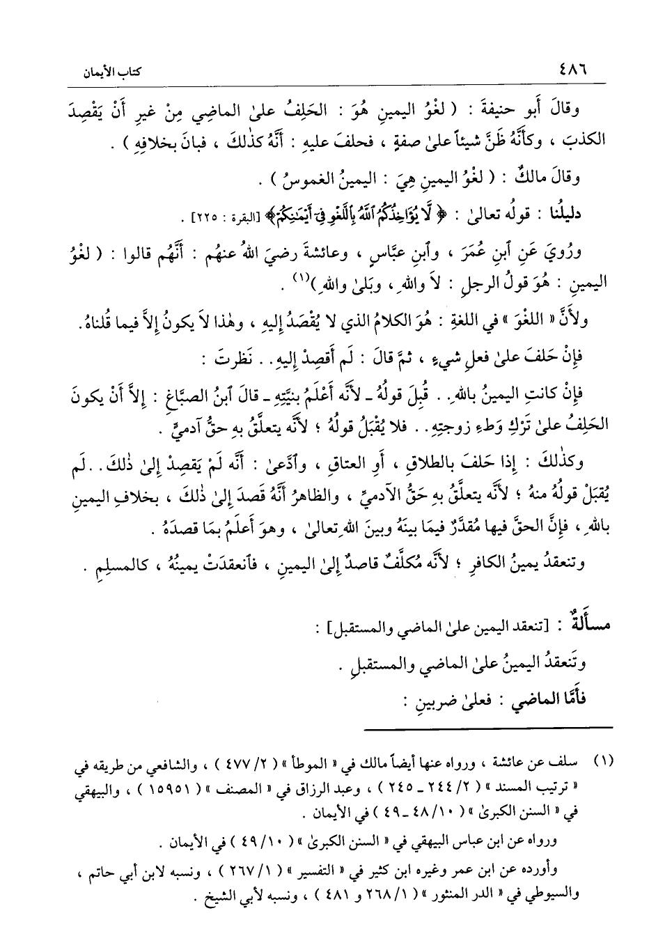 ] : وتنعقد اليمين على الماضي والمستقبل.