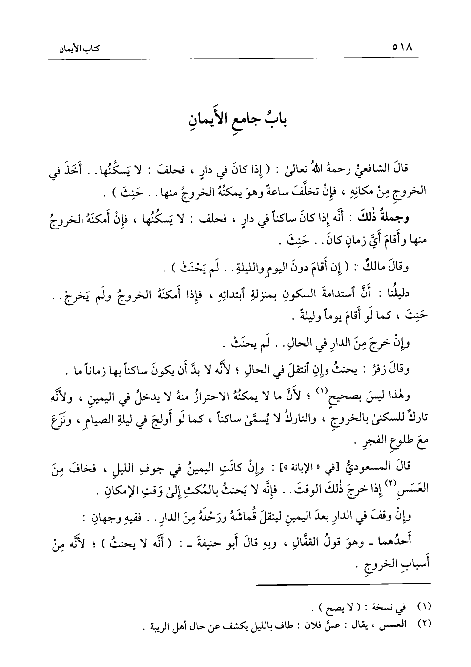 وقال مالك: (إن أقام دون اليوم والليلة.. لم يحنث) .