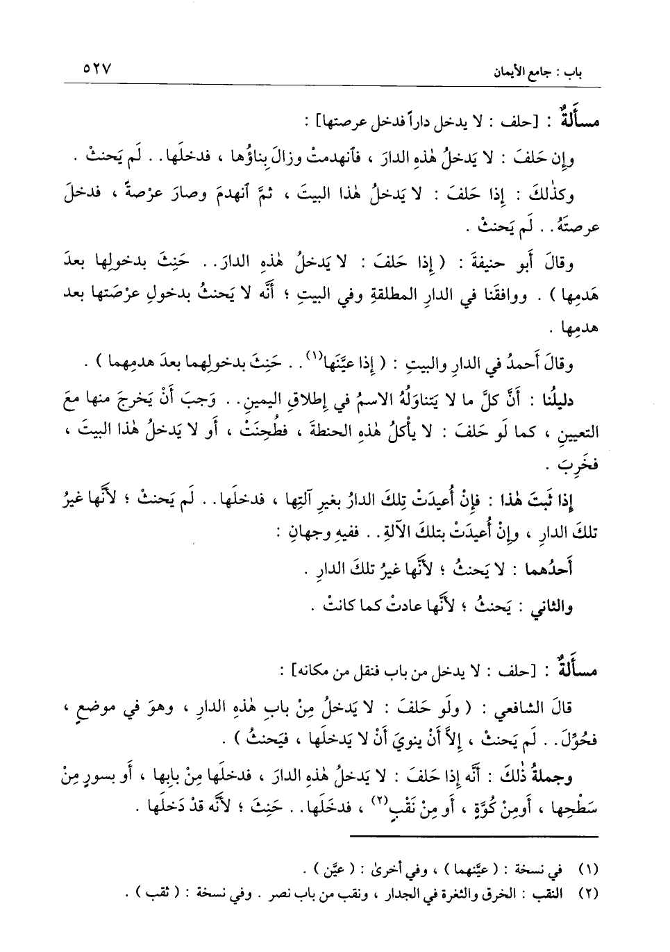 وجملة ذلك: أنه إذا حلف: لا يدخل هذه الدار، فدخلها من بابها، أو بسور من سطحها، أو من كوة، أو من نقب، فدخلها.. حنث؛ لأنه قد دخلها.