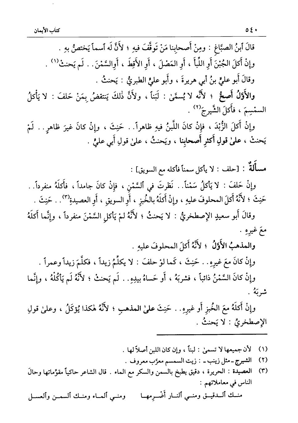 [مسألة: حلف لا يأكل سمنا فأكله مع السويق]