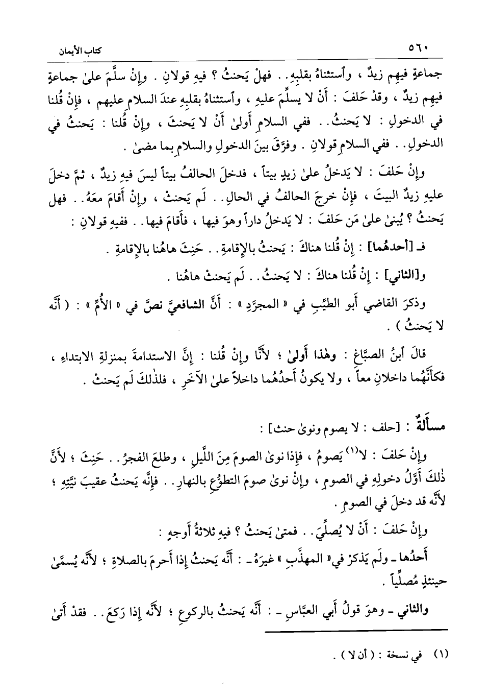 جماعة فيهم زيد، واستثناه بقلبه.. فهل يحنث؟ فيه قولان. وإن سلم على جماعة فيهم زيد، وقد حلف: أن لا يسلم عليه، واستثناه بقلبه عند السلام عليهم، فإن قلنا في الدخول: لا يحنث.. ففي السلام أولى أن لا يحنث، وإن قلنا: يحنث في الدخول.. ففي السلام قولان. وفرق بين الدخول والسلام بما مضى.