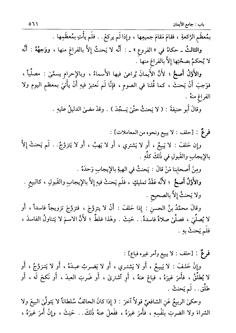 [فرع: حلف لا يبيع ونحوه من المعاملات]