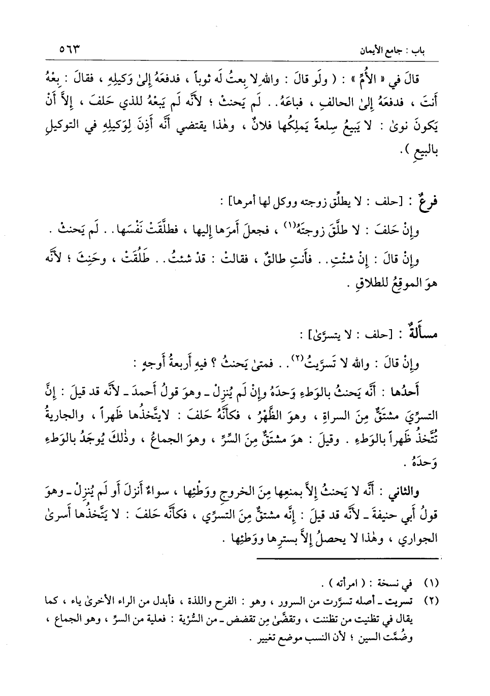 [مسألة: حلف لا يتسرى]