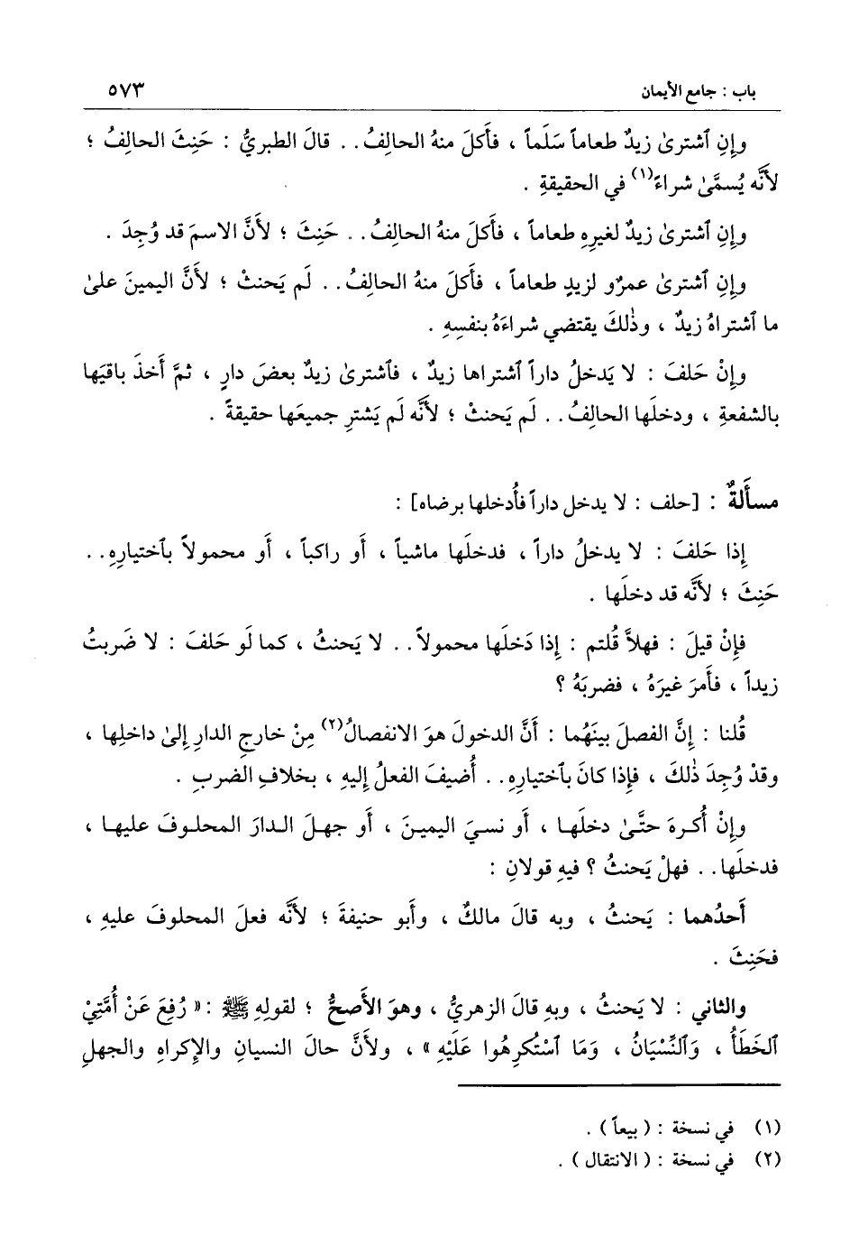وإن حلف: لا يدخل دارا اشتراها زيد، فاشترى زيد بعض دار، ثم أخذ باقيها بالشفعة، ودخلها الحالف.. لم يحنث؛ لأنه لم يشتر جميعها حقيقة.