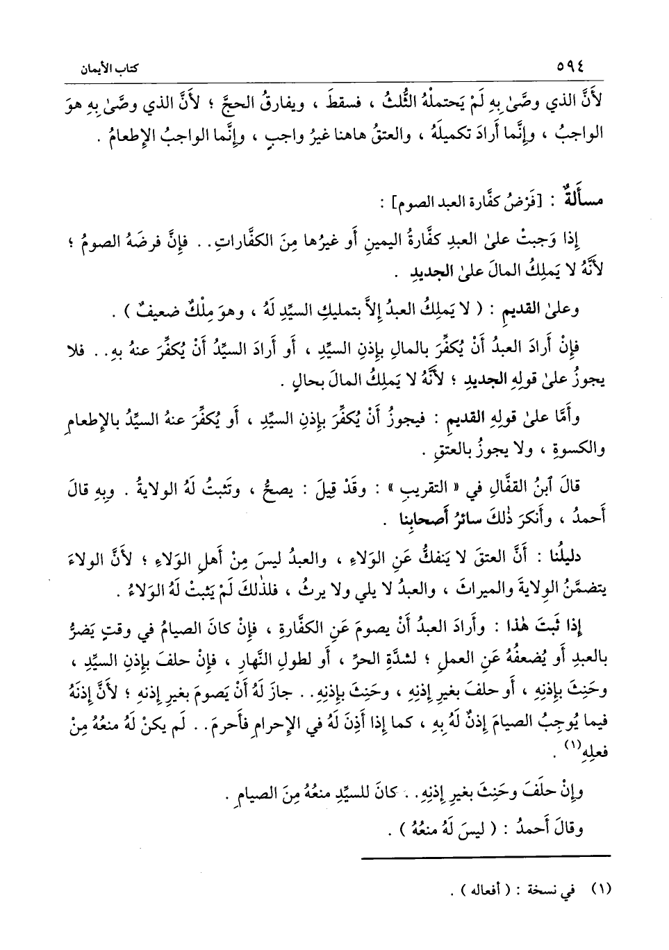 إذا وجبت على العبد كفارة اليمين أو غيرها من الكفارات.. فإن فرضه الصوم؛ لأنه لا يملك المال على الجديد.