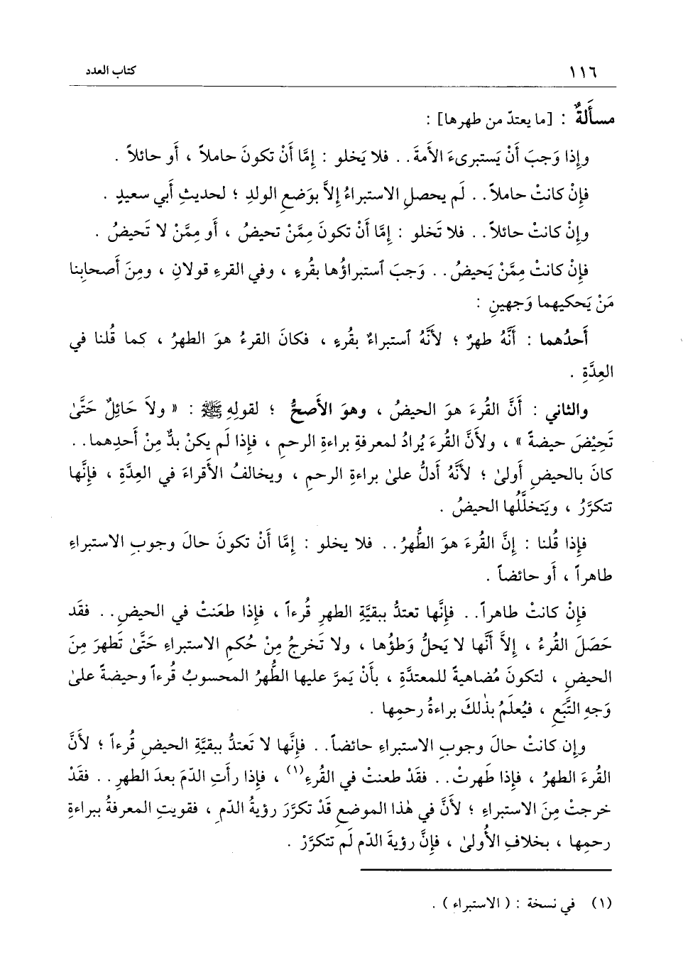 فإذا قلنا: إن القرء هو الطهر.. فلا يخلو: إما أن تكون حال وجوب الاستبراء طاهرا، أو حائضا.