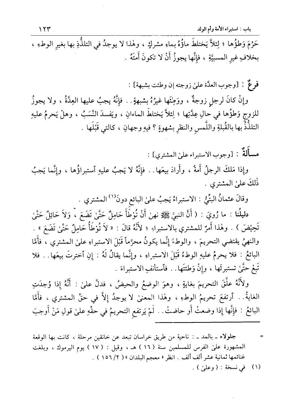 ولأنه علق التحريم بغاية، وهو الوضع والحيض، فدل على: أنه إذا وجدت الغاية.. ارتفع تحريم الوطء، وهذا المعنى لا يوجد إلا في حق المشتري، فأما البائع: فإنها إذا وضعت أو حاضت.. لم يرتفع التحريم في حقه على قول من أوجب