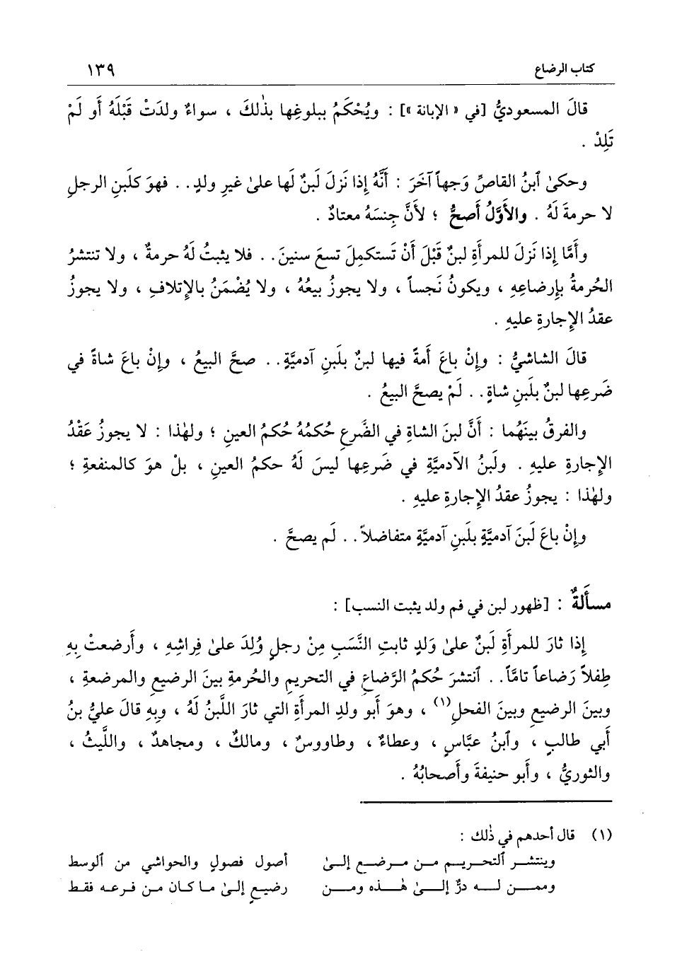 ] : إذا ثار للمرأة لبن على ولد ثابت النسب من رجل ولد على فراشه، وأرضعت به طفلا رضاعًا تامًا.. انتشر حكم الرضاع في التحريم والحرمة بين الرضيع والمرضعة، وبين الرضيع وبين الفحل، وهو أبو ولد المرأة التي ثار اللبن له، وبه قال علي بن أبي طالب، وابن عباس، وعطاء، وطاووس، ومالك، ومجاهد، والليث، والثوري، وأبو حنيفة وأصحابه.