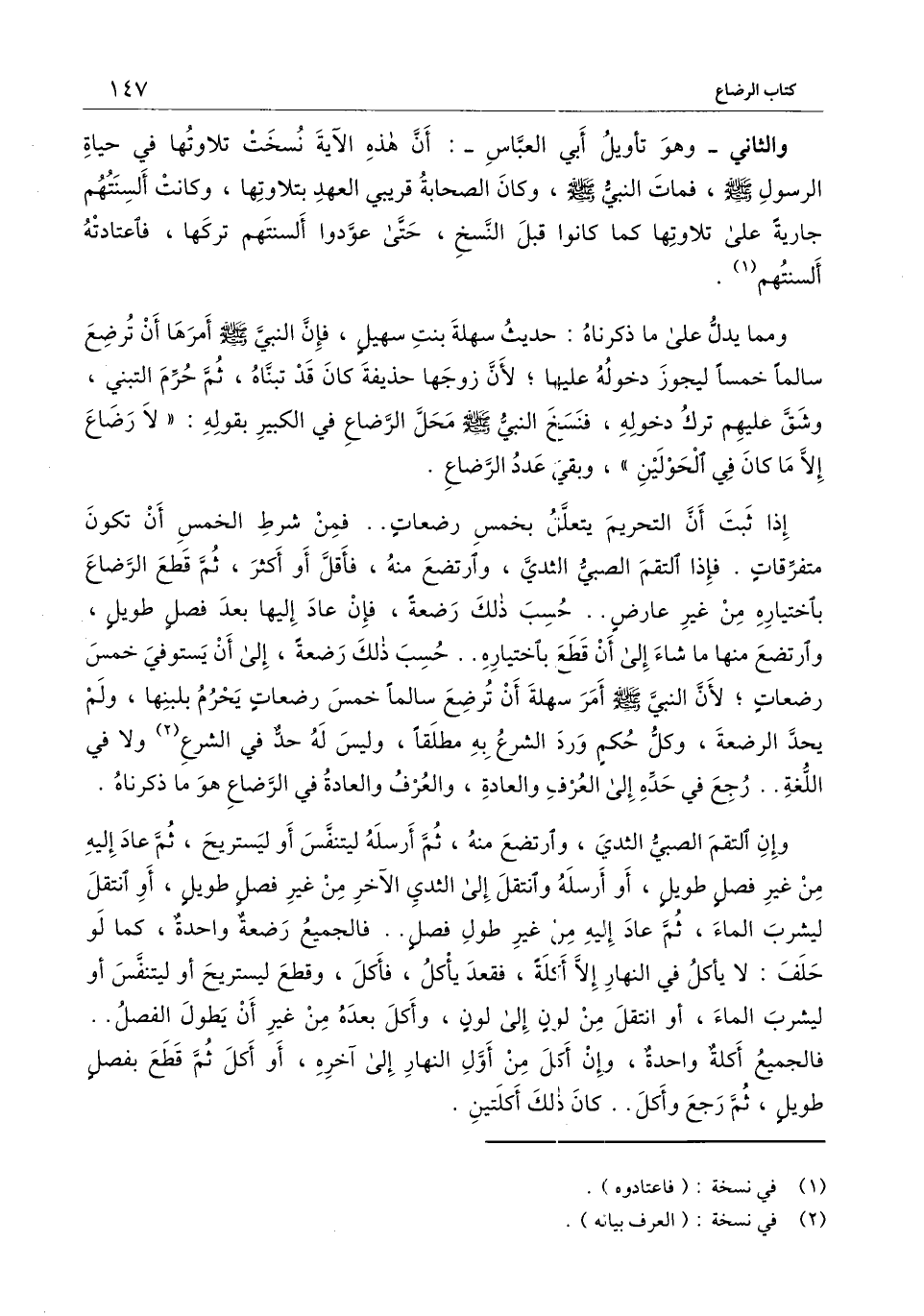 ومم يدل على ما ذكرناه: حديث سهلة بنت سهيل، فإن النبي - صَلَّى اللَّهُ عَلَيْهِ وَسَلَّمَ - أمرها أن ترضع سالمًا خمسًا ليجوز دخوله عليها؛ لأن زوجها حذيفة كان قد تبناه، ثم حرم التبني، وشق عليهم ترك دخوله، فنسخ النبي - صَلَّى اللَّهُ عَلَيْهِ وَسَلَّمَ - محل الرضاع في الكبير بقوله: «لا رضاع إلا ما كان في الحولين» ، وبقي عدد الرضاع.
