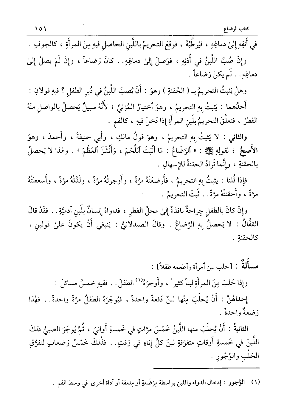 ] : وإذا حلب من المرأة لبنًا كثيرًا، وأوجره الطفل.. ففيه خمس مسائل: