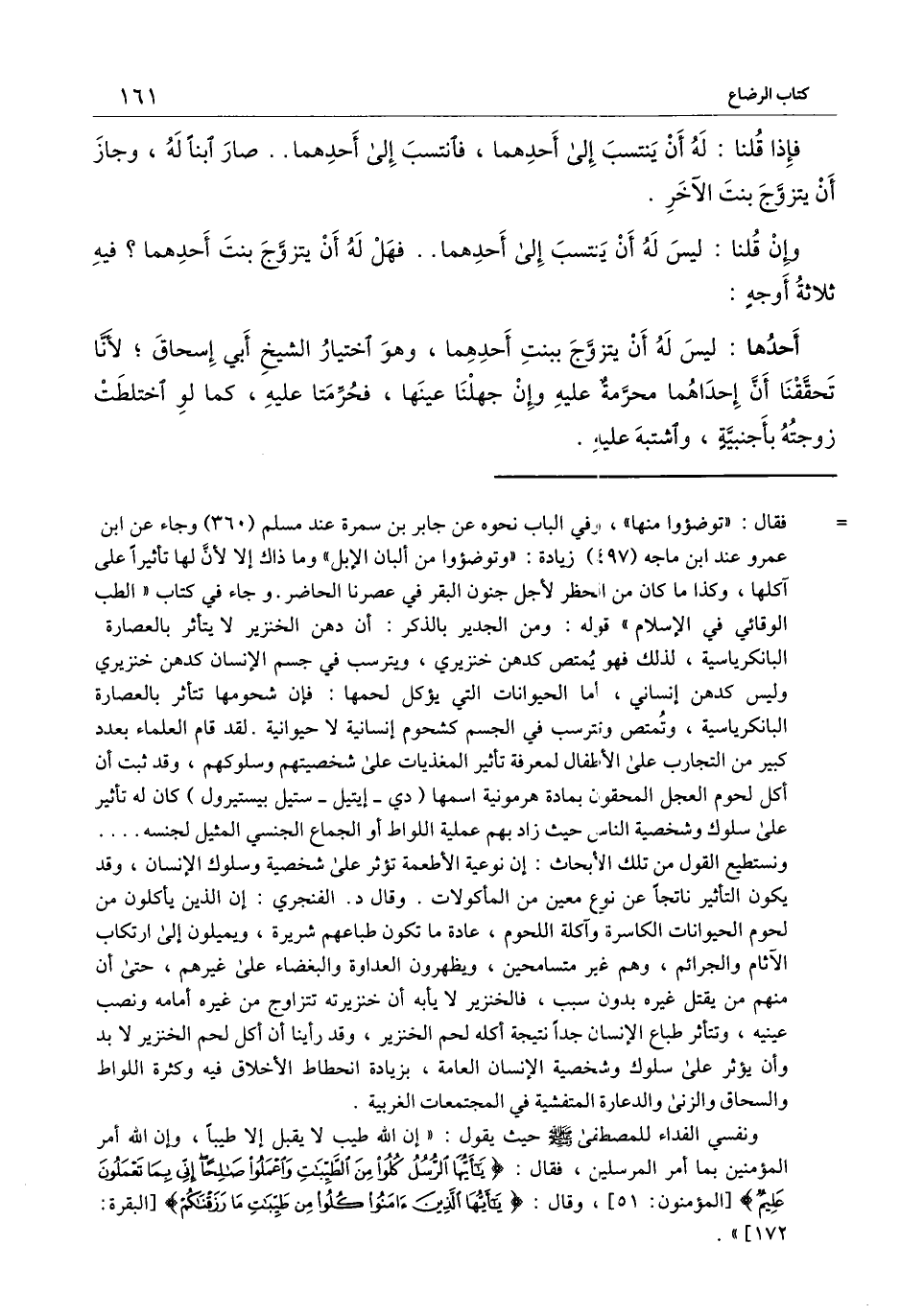 وإن قلنا: ليس له أن ينتسب إلى أحدهما.. فهل له أن يتزوج بنت أحدهما؟ فيه ثلاثة أوجه: