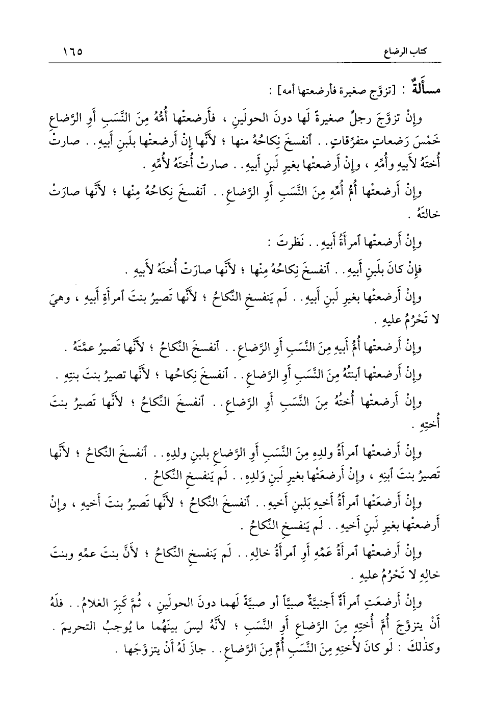 [مسألة تزوج صغيرة فأرضعتها أمه]