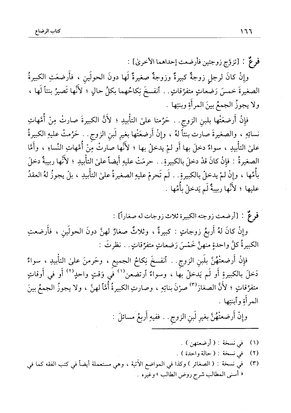 [فرع أرضعت زوجته الكبيرة ثلاث زوجات له صغارًا]