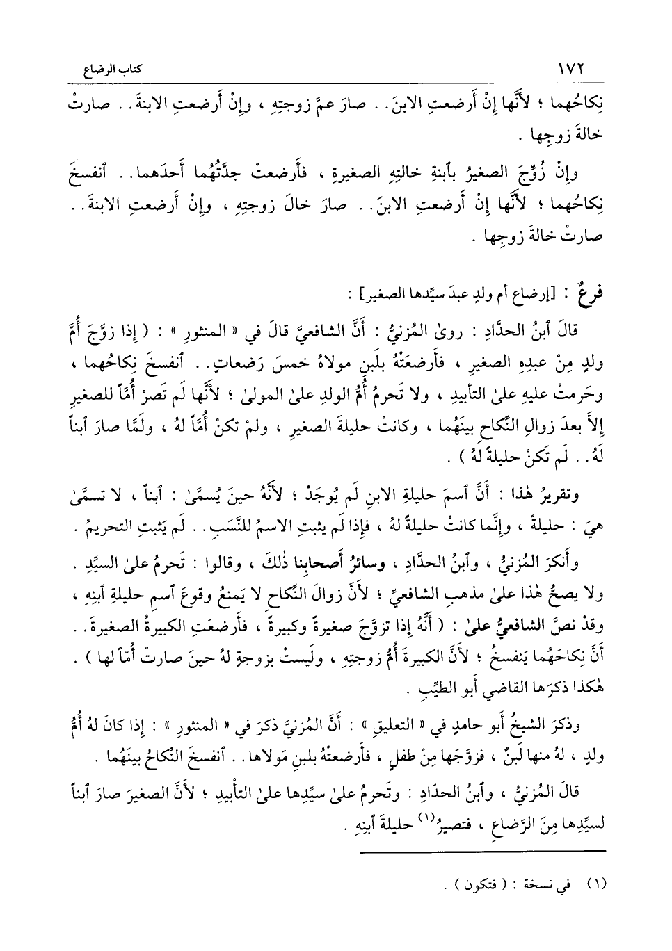 [فرع إرضاع أم ولد عبد سيدها الصغير]