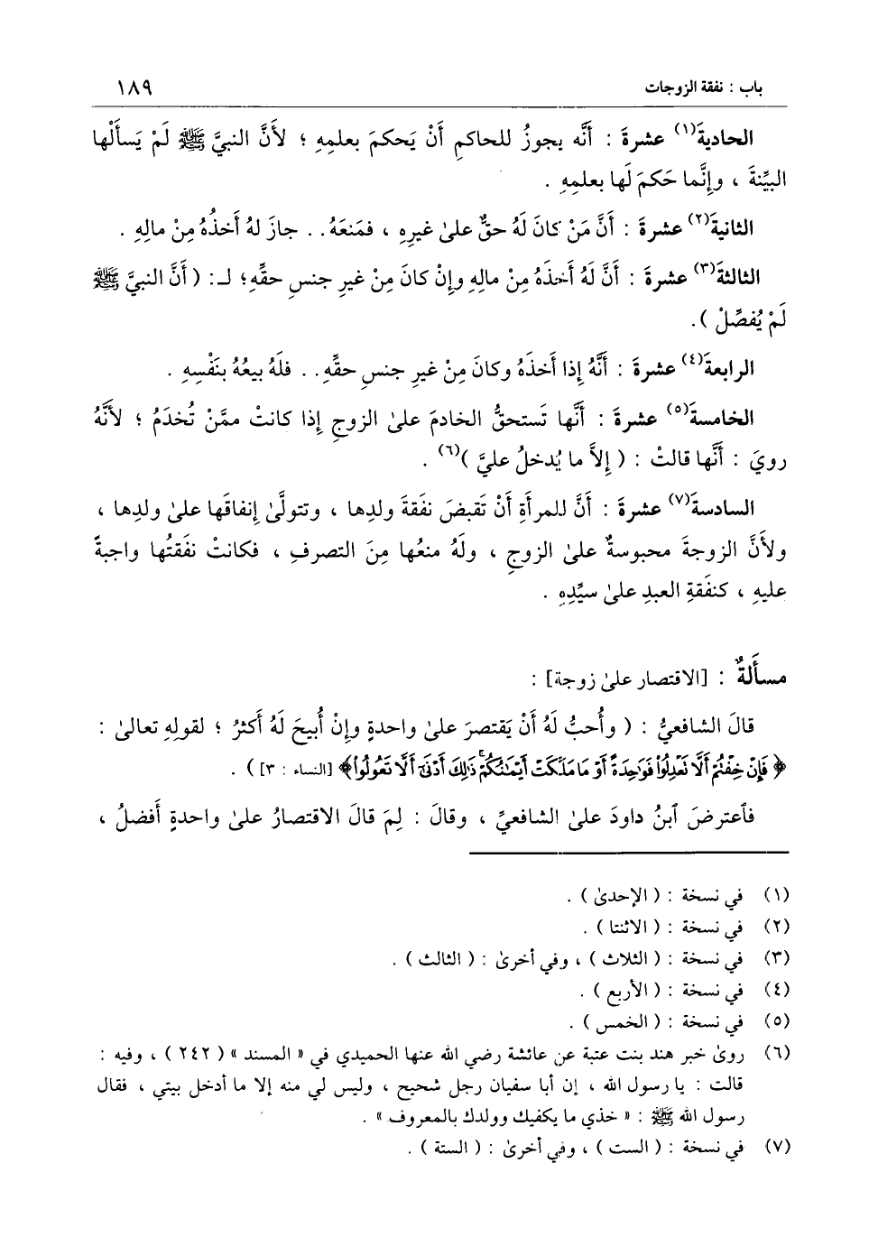[مسألة الاقتصار على زوجة]