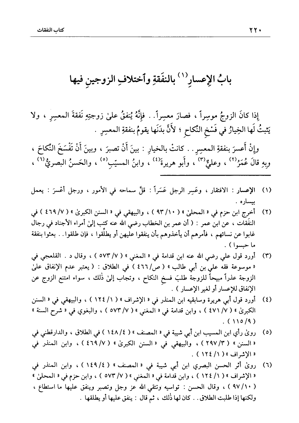 [باب الإعسار بالنفقة واختلاف الزوجين فيها]