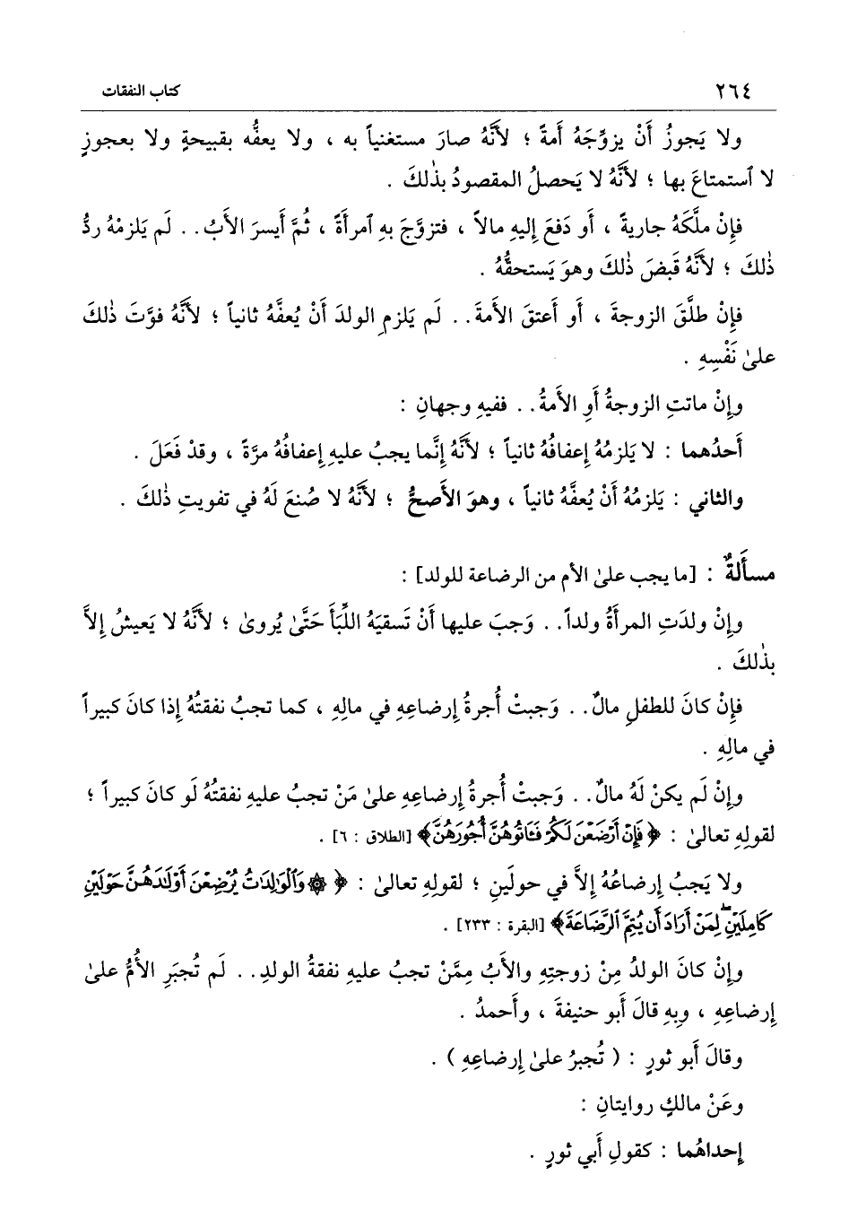 ولا يجب إرضاعه إلا في حولين؛ لِقَوْلِهِ تَعَالَى: {وَالْوَالِدَاتُ يُرْضِعْنَ أَوْلادَهُنَّ حَوْلَيْنِ كَامِلَيْنِ لِمَنْ أَرَادَ أَنْ يُتِمَّ الرَّضَاعَةَ} [البقرة: 233] [البقرة: 233] .