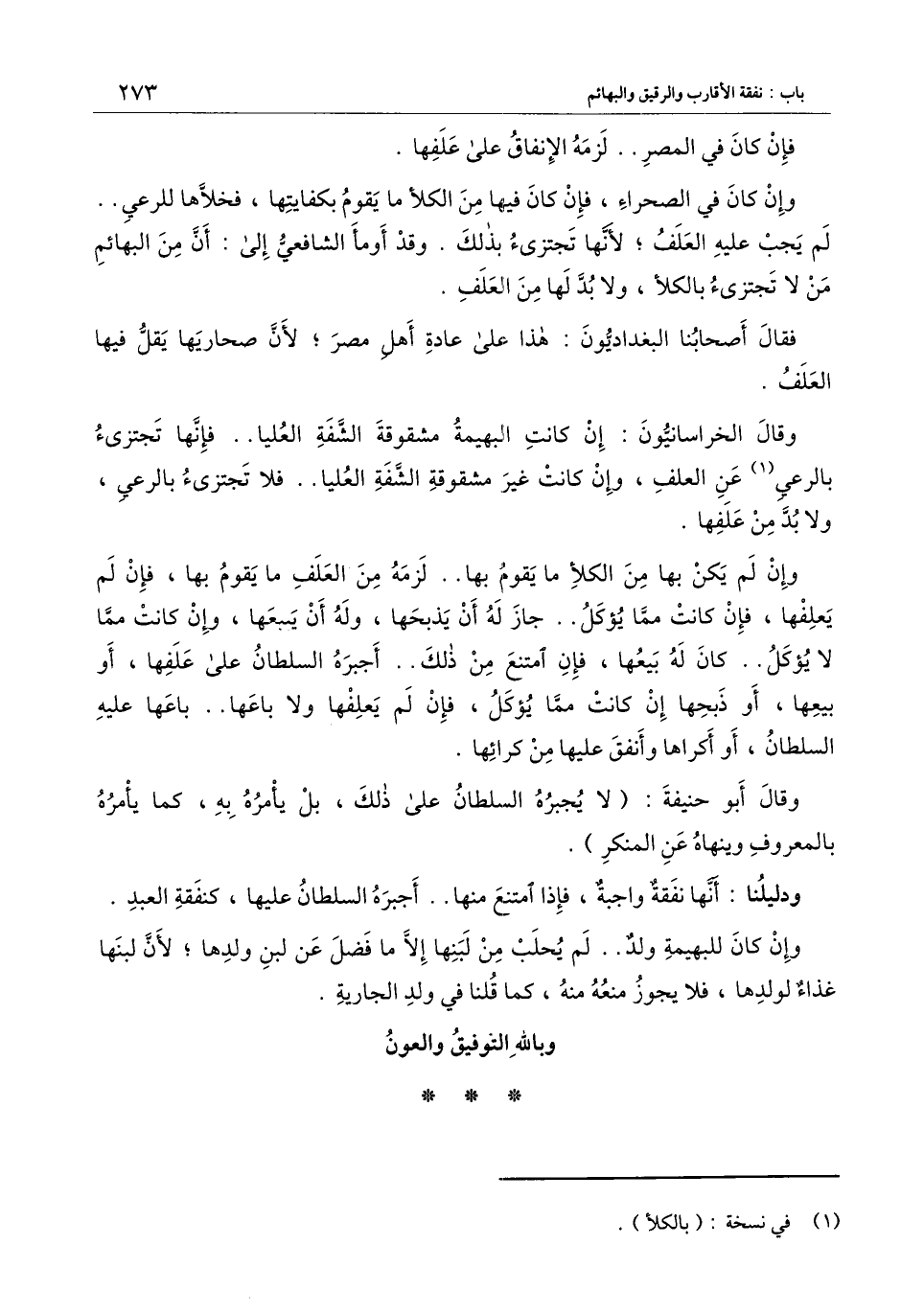 فقال أصحابنا البغداديون: هذا على عادة أهل مصر؛ لأن صحاريها يقل فيها العلف.