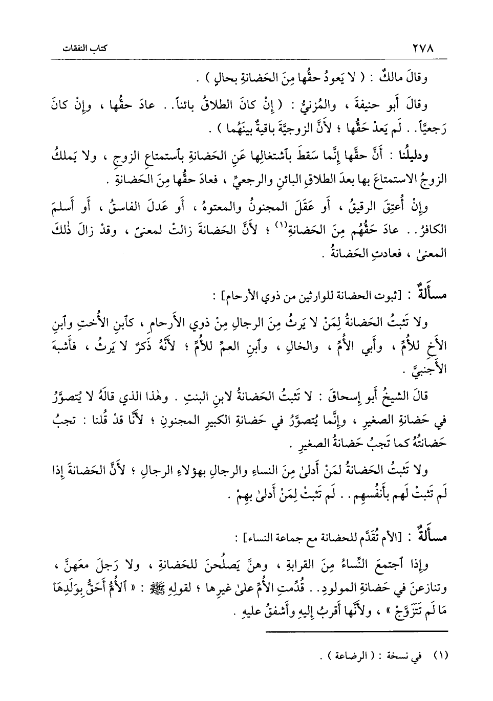 [مسألة الأم تقدم للحضانة مع جماعة النساء]