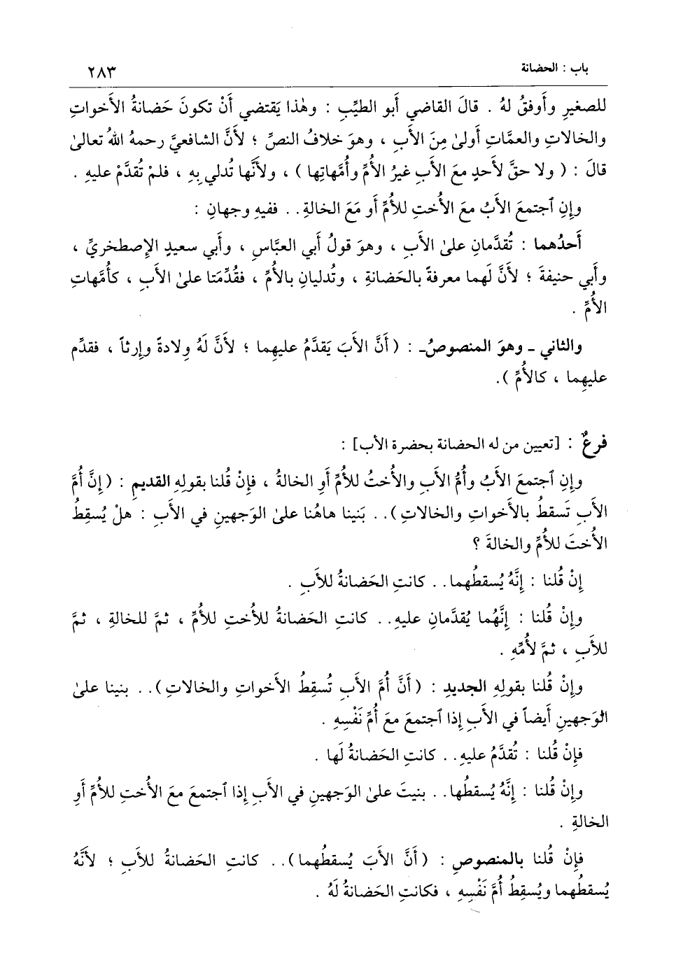 للصغير وأوفق له. قال القاضي أبو الطيب: وهذا يقتضي أن تكون حضانة الأخوات والخالات والعمات أولى من الأب، وهو خلاف النص؛ لأن الشافعي - رَحِمَهُ اللَّهُ تَعَالَى - قال: (ولا حق لأحد مع الأب غير الأم وأمهاتها) ، ولأنها تدلي به، فلم تقدم عليه.