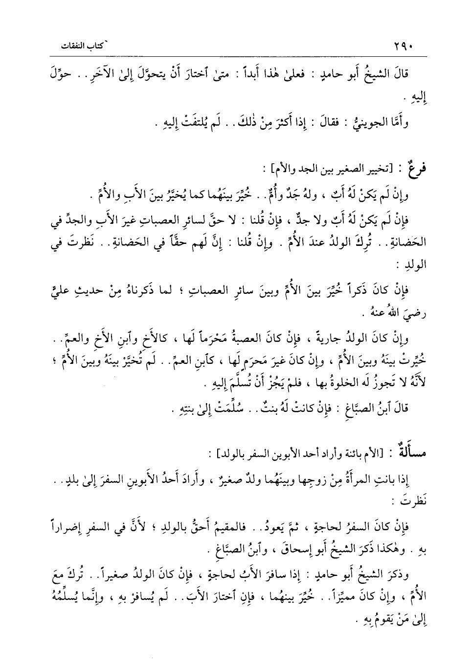 [مسألة الأم بائنة وأراد أحد الأبوين السفر بالولد]
